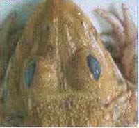 Bệnh này chưa xác định được tác nhân, nhưng nhiều khả năng có thể do vi khuẩn Pseudomonas sp. Ếch bệnh có triệu chứng mắt ếch có mủ ở mí mắt, viêm sưng, có màu trắng đục ở một mắt, rồi lây sang mắt còn lại gây mù cả hai mắt.